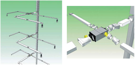 El sistema formado por conductos rectangulares de longitudes de 3 metros con sus empalmes y accesorios, confiere una mayor facilidad de montaje respecto al sistema convencional.